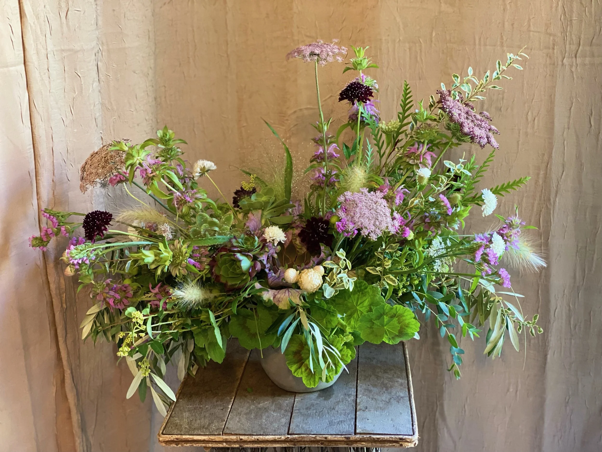 This gorgeous arrangement of farm fresh, locally grown flowers is a great gift for any wild at heart flower lover! Made with unique blooms, grasses and succulents, it’s the gift that keeps giving. Re-plant the succulents in your own garden and the arrangement is perfect for drying, to be saved and enjoyed all year long!